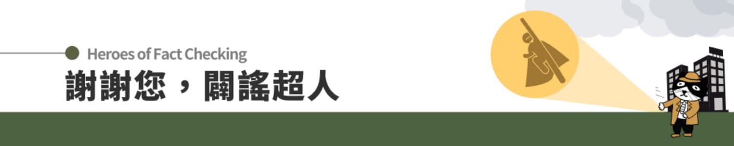 感謝每一位提供正確資訊、樂於闢謠的專家,也感謝每一位閱讀闢謠報告、給予指教的讀者。謝謝你,闢謠超人!