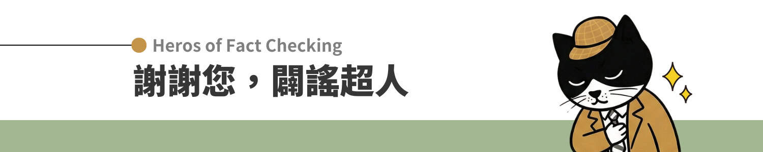 感謝每一位提供正確資訊、樂於闢謠的專家,也感謝每一位閱讀闢謠報告、給予指教的讀者。謝謝你,闢謠超人!