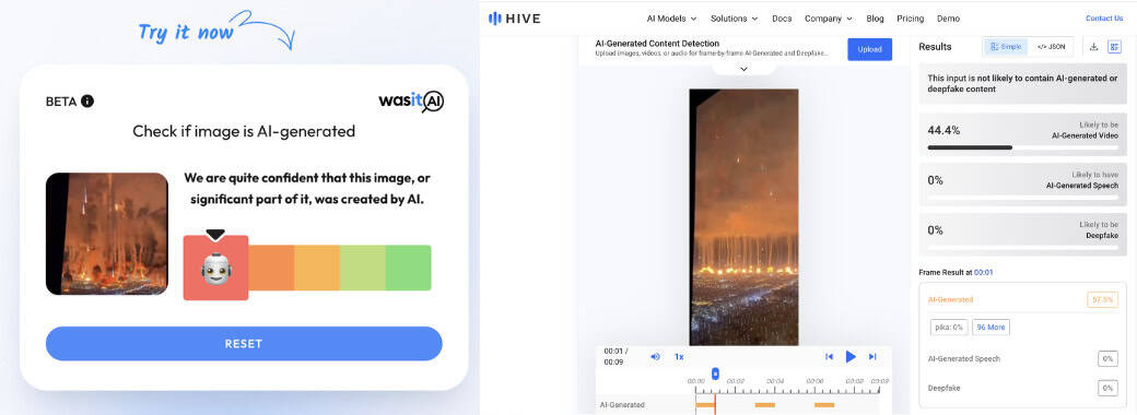 以AI工具偵測,網傳影像也有高度AI生成風險。
