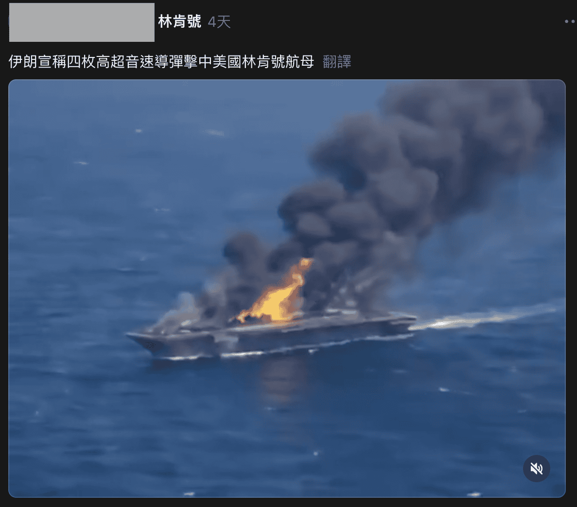 美國於2月28日對伊朗發動攻擊,伊朗也進行報復攻擊。網傳流傳一段船艦甲板起火畫面,傳言文字宣稱是伊朗4枚飛彈擊中美國林肯號航空母艦。