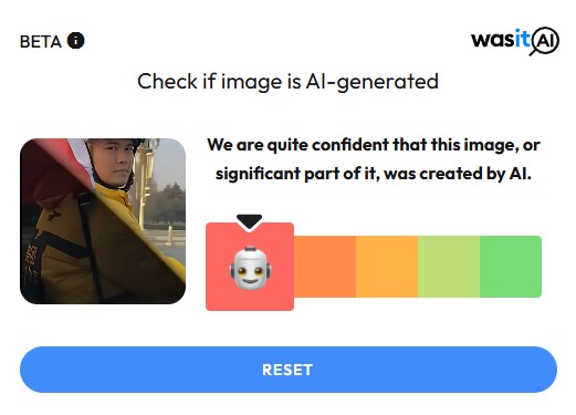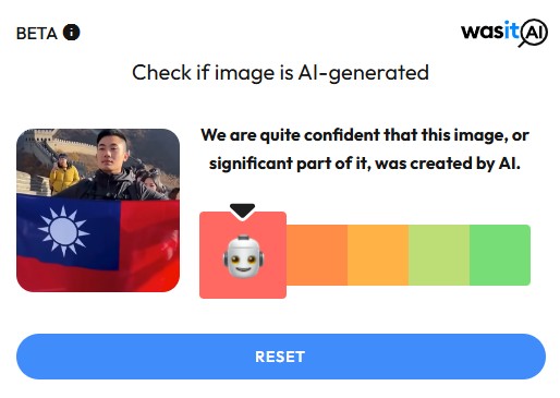 網傳「天安門」影片透過開源軟體「was it AI」偵測顯示為AI生成