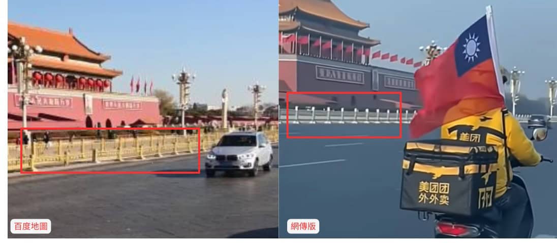 近期網傳「大陸外賣小哥真勇敢」、「路過北平天安門帶著中華民國國旗」等影片,畫面中可見一名身穿中國外送平台制服的騎士,在疑似天安門廣場的背景下,展示著青天白日滿地紅旗,此類影片在海內外社交媒體上迅速擴散。