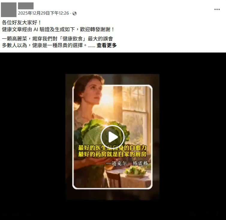 網傳影片過度渲染、聚焦特定蔬菜及植化素的功效