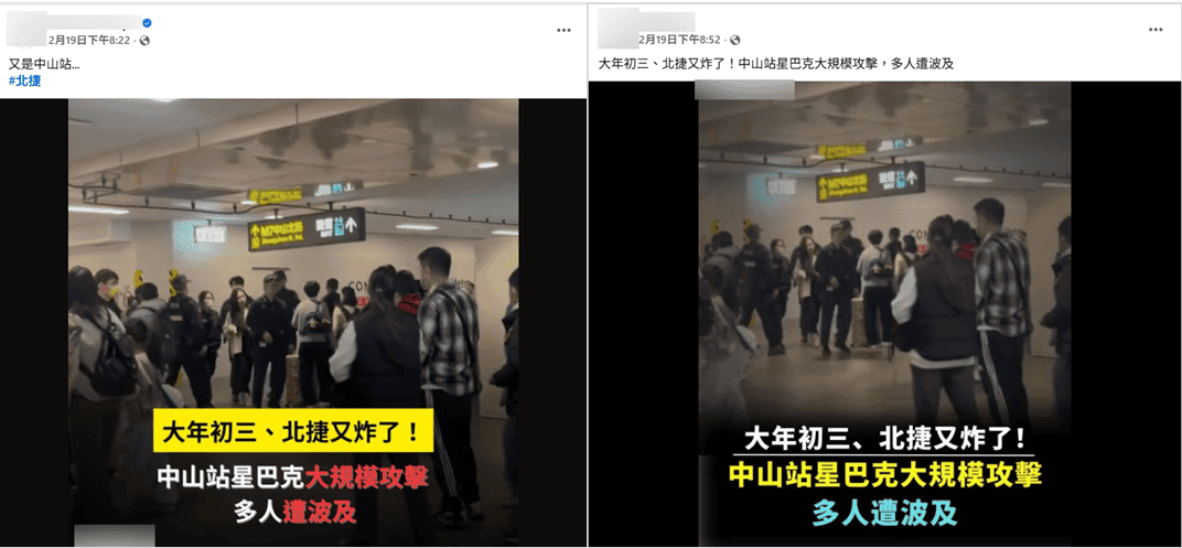 查核點:網傳「大年初三、北捷又炸了、中山站星巴克大規模攻擊」,是真的嗎?