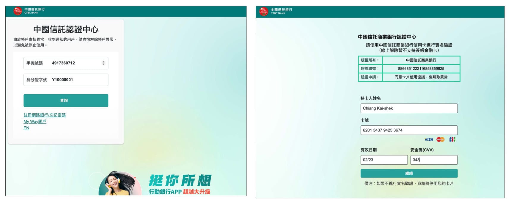 網傳連結是假冒中國信託的詐騙網站,輸入後可能導致個資外洩。