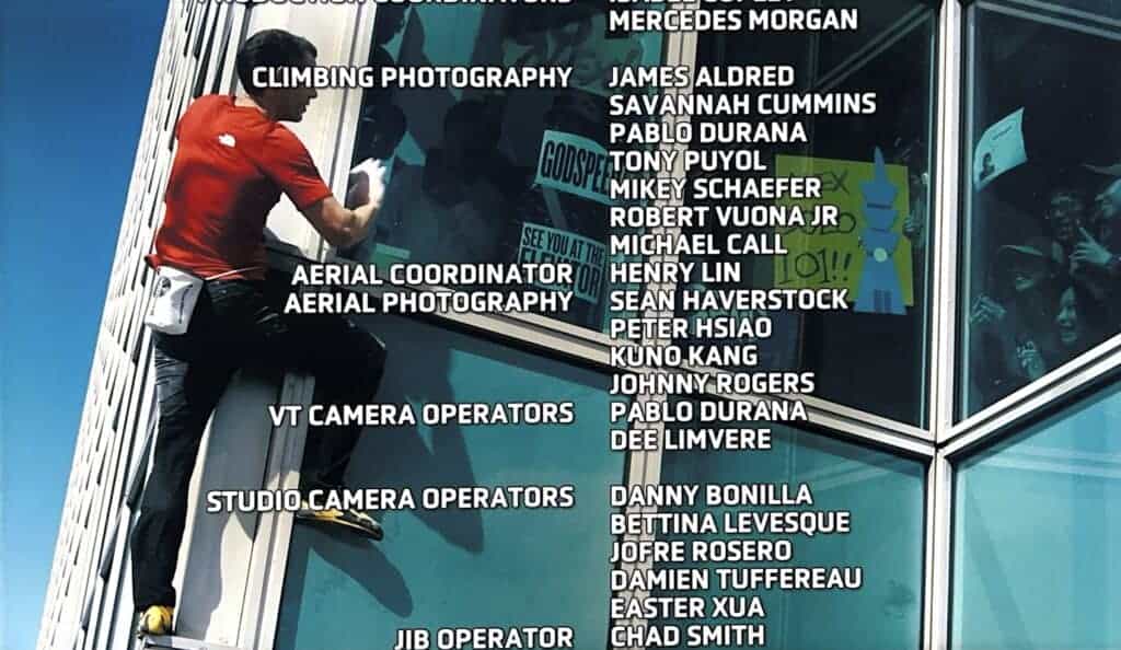美國攀岩家艾力克斯.霍諾德(Alex Honnold)獨攀台北101引發話題,社群有文章宣稱此次紀錄片攝影是奧斯卡獎得主金國威(Jimmy Chin),且被媒體大量引用。但檢視《赤手獨攀台北101:直播》片尾,即可知道金國威並非團隊成員。