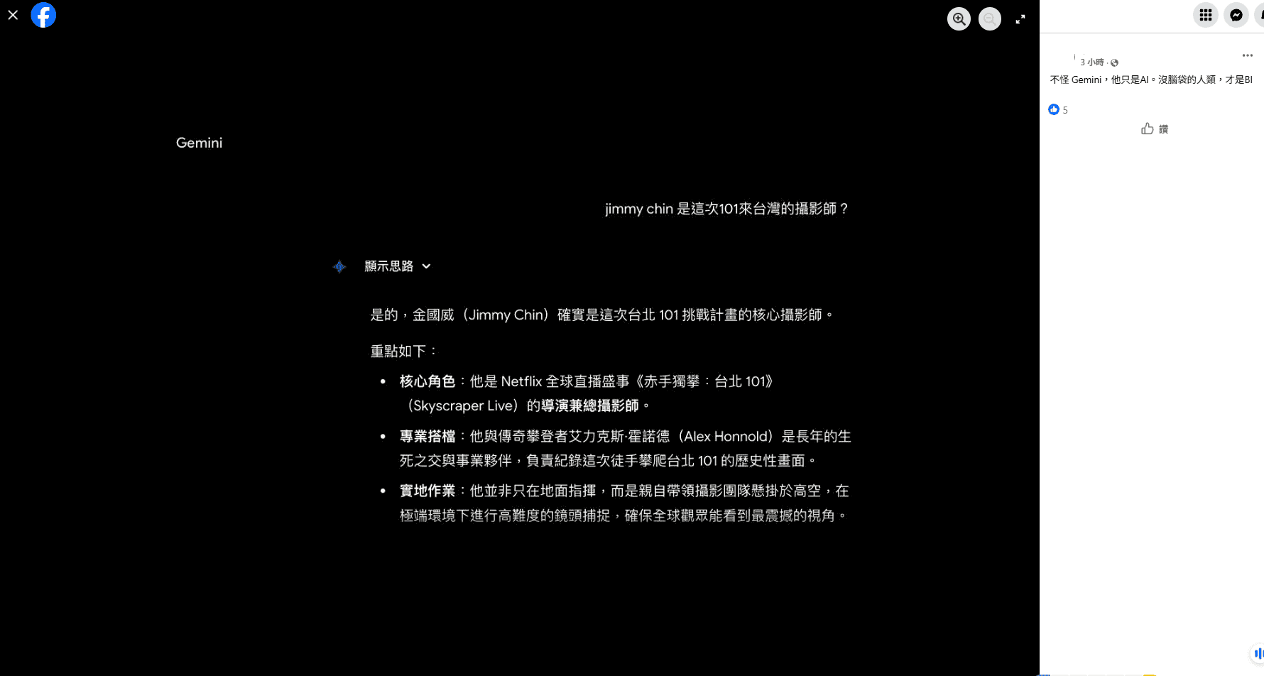 網傳金國威來台拍攝霍諾德獨攀101,實為網友詢問AI後的錯誤資訊。