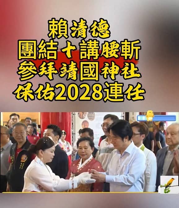 賴清德參香桃園慈母宮畫面,與靖國神社無關