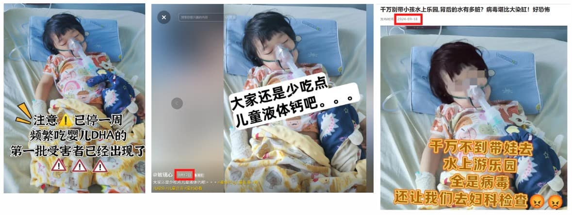 若再進一步往前追溯,更可以發現早在2024年,中國網路平台就已經熱傳相同圖片,並稱千萬別帶小孩去水上樂園玩,因為水裡病毒很多。