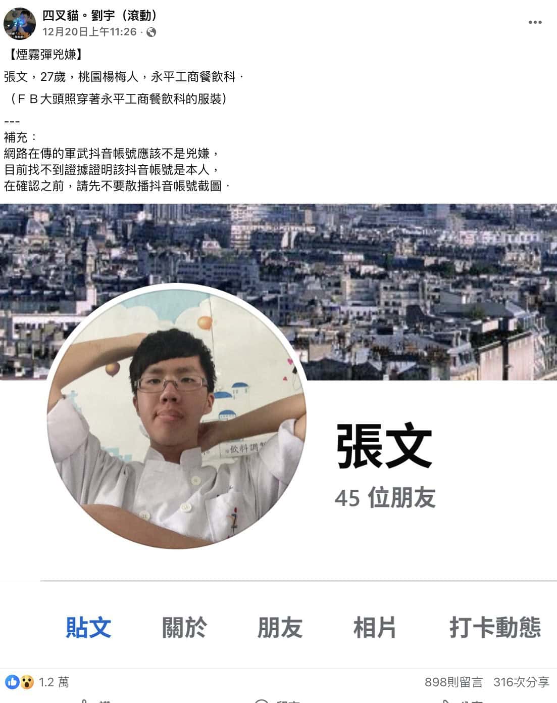 網紅「四叉貓」揭露疑似兇嫌張文的臉書帳號
