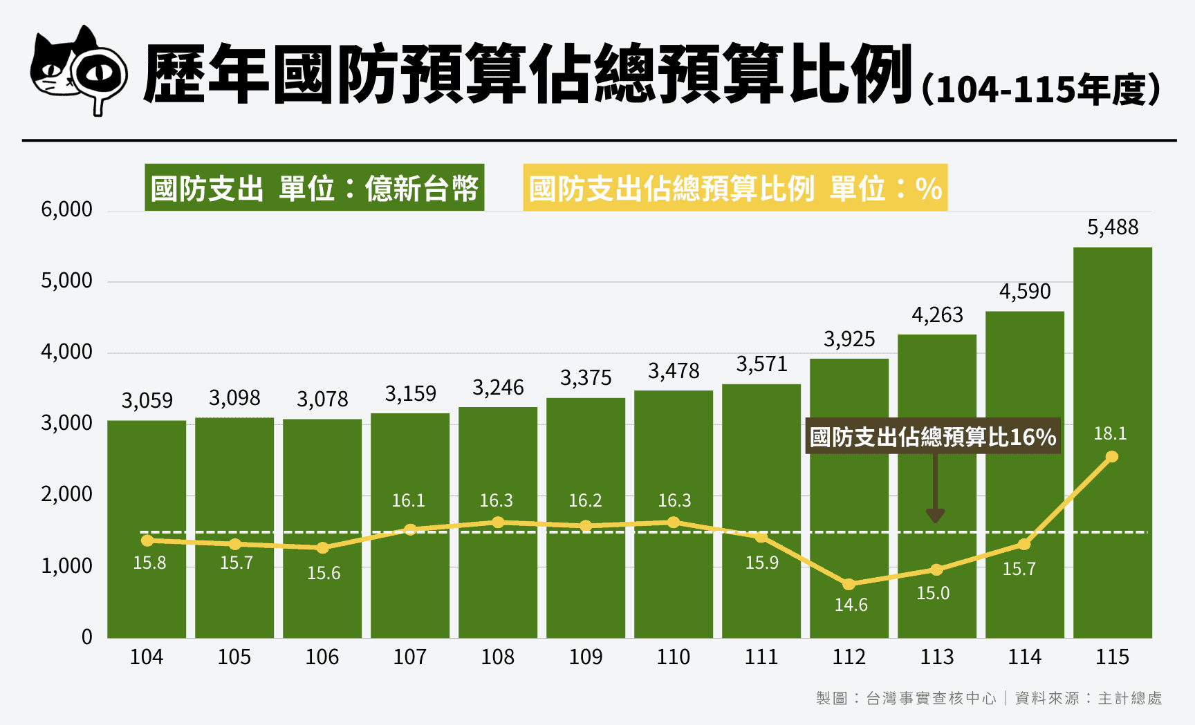 115年度國防支出佔總預算18.1%
