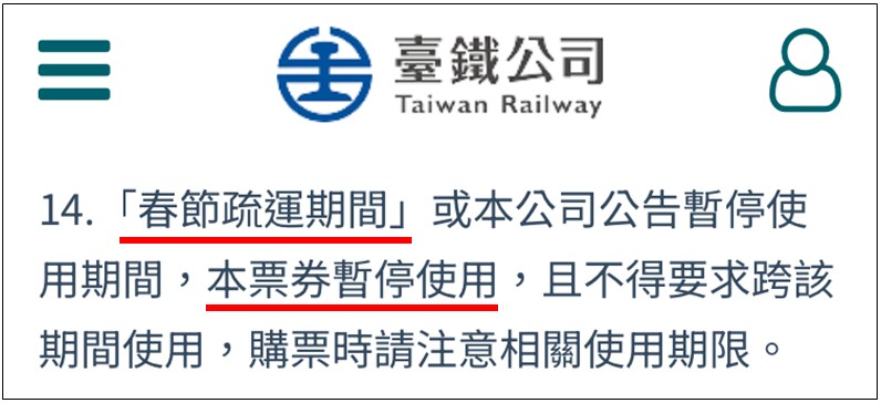 「TR-PASS」春節疏運期間暫停使用/來源:台鐵官網「TR-PASS使用須知」