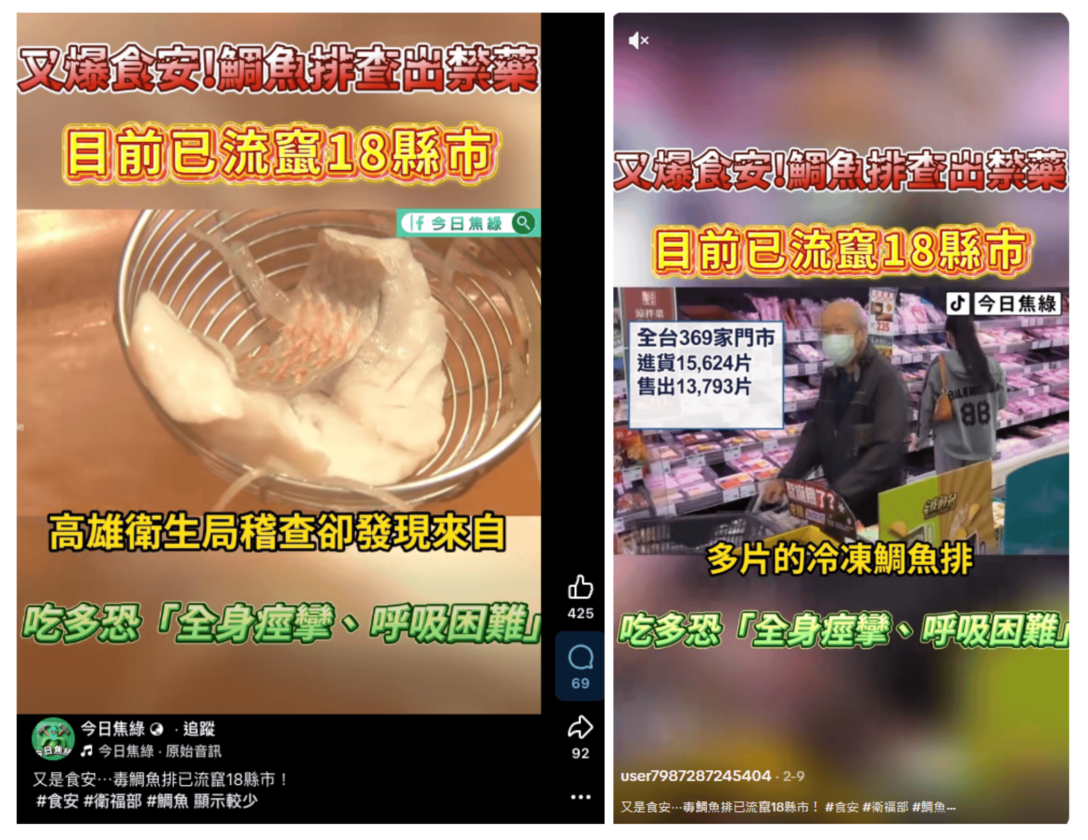 綜合以上,傳言引用高雄市衛生局去年底檢驗案的新聞畫面,當時市場確實擔憂鯛魚排食安,但高雄市後來已澄清,檢驗結果出現人為錯誤、並無毒鯛魚流入市面。網路傳言引用過時資訊卻未詳加說明,可能造成恐慌。