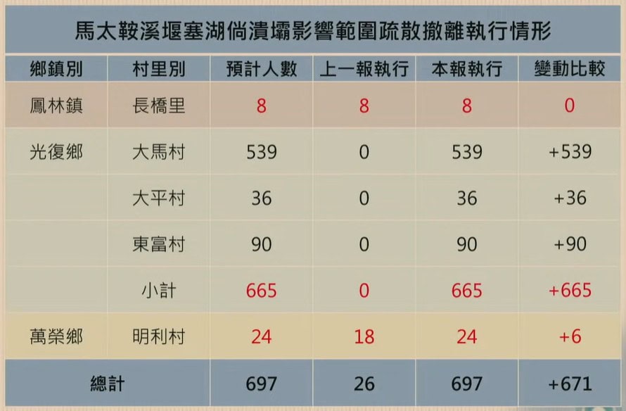 林保署8月評估疏散697人,9/19會議認為「溢堤區域減少」