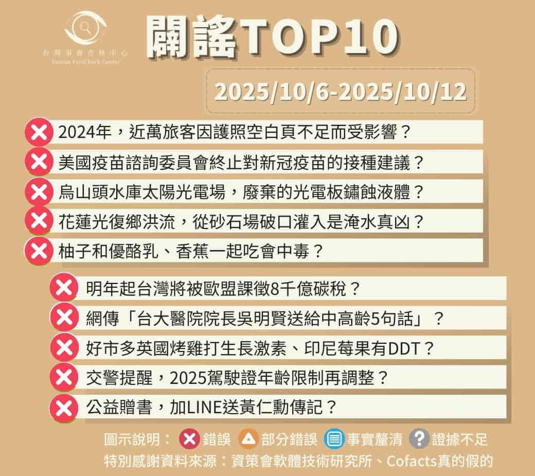 【2025/10/6-2025/10/12】闢謠TOP10